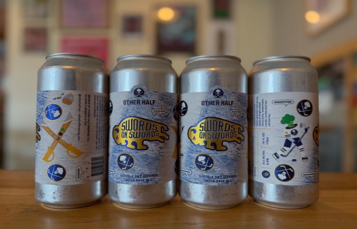 In case you’ve been living under a rock, the Buffalo Sabres are good again and all in right once again in Western New York. Other Half Buffalo, one of the breweries in closest proximity to KeyBank Center, where the Sabres calls home, are celebrating the team’s resurgence with the release of Swords on Swords, a 6.5% hazy IPA brewed with Citra, Motueka, Krush Cryo, Enigma and Anchovy hops. “This hazy IPA is good, scary good, brewed with massive amount of hand-selected hops giving notes of bright sweet citrus juice, watermelon candy, lychee and tart red berries,” the beer description reads. Swords on Swords in available now on tap and in cans at the brewery.